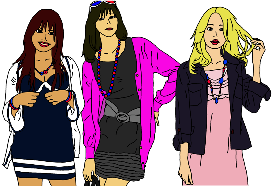 V:VAMO子(左端) T:トーコ(中央) K:キョーコ(右端)