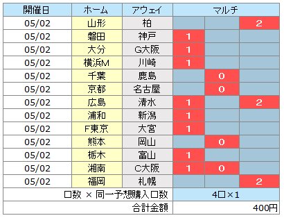 ちなみにmini totoなら東京勝利にマークをして、残りの試合は全部マークしても8100円という現実的な額で購入ができます。